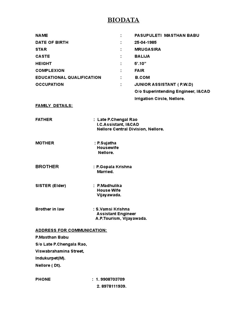Biodata Format For Marriage
