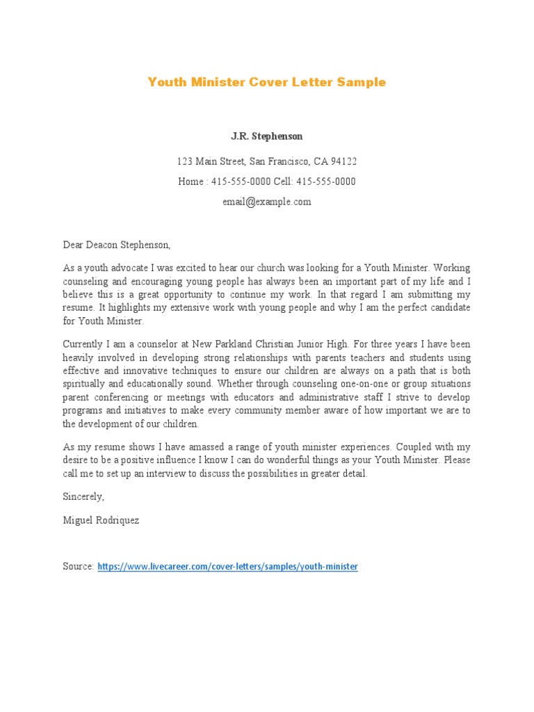 Youth Minister Cover Letter Sample Cover Letter Templates Examples